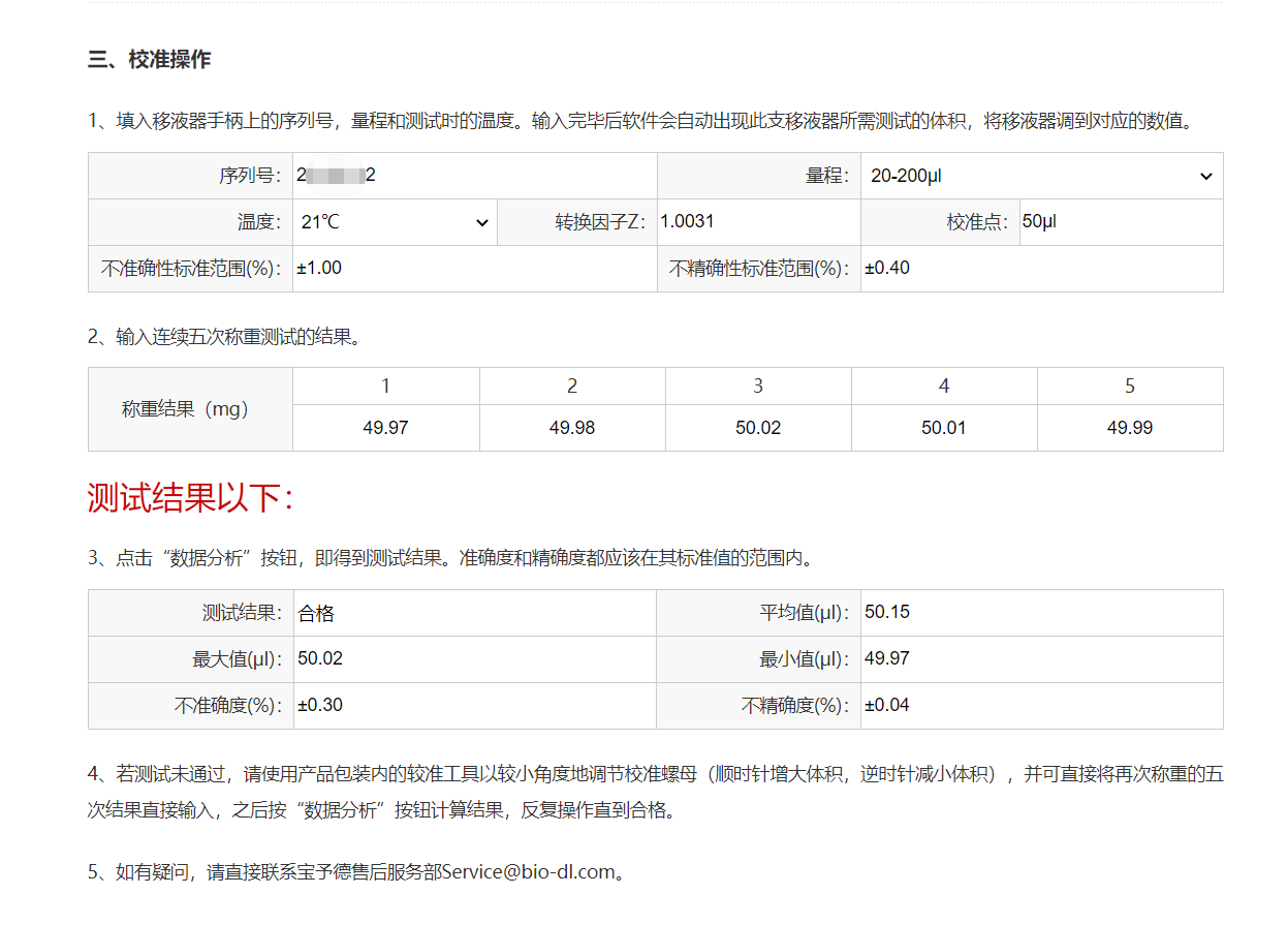 使用寶予德系列移液器的小伙伴們,可以登錄寶予德官方網站進行在線校準(http://www.bio-dl.com/correct.html),根據網站提示操作,輸入相關信息則可以立即檢驗移液器的準確度啦,加上配套的小工具還可以直接校準哦!